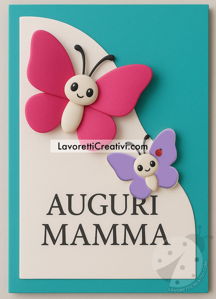 Questo biglietto, realizzato a mano con colori vivaci e forme morbide, è molto più di un pensiero: è un abbraccio fatto di carta, un sorriso che si posa sulle ali dell’affetto. Ogni dettaglio – dal contrasto delicato dei colori alla forma tenera delle farfalle – racconta l’amore che solo una mamma sa dare.