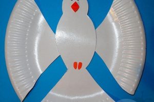 Colomba da realizzare con un piatto di carta piano e cartoncino arancione. LAVORETTI DI PASQUA Colomba di Pasqua Materiale: cartoncino arancione piatto di...