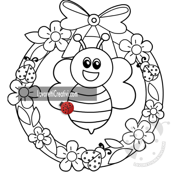 Ghirlanda di fiori con ape da colorare, clicca il PDF